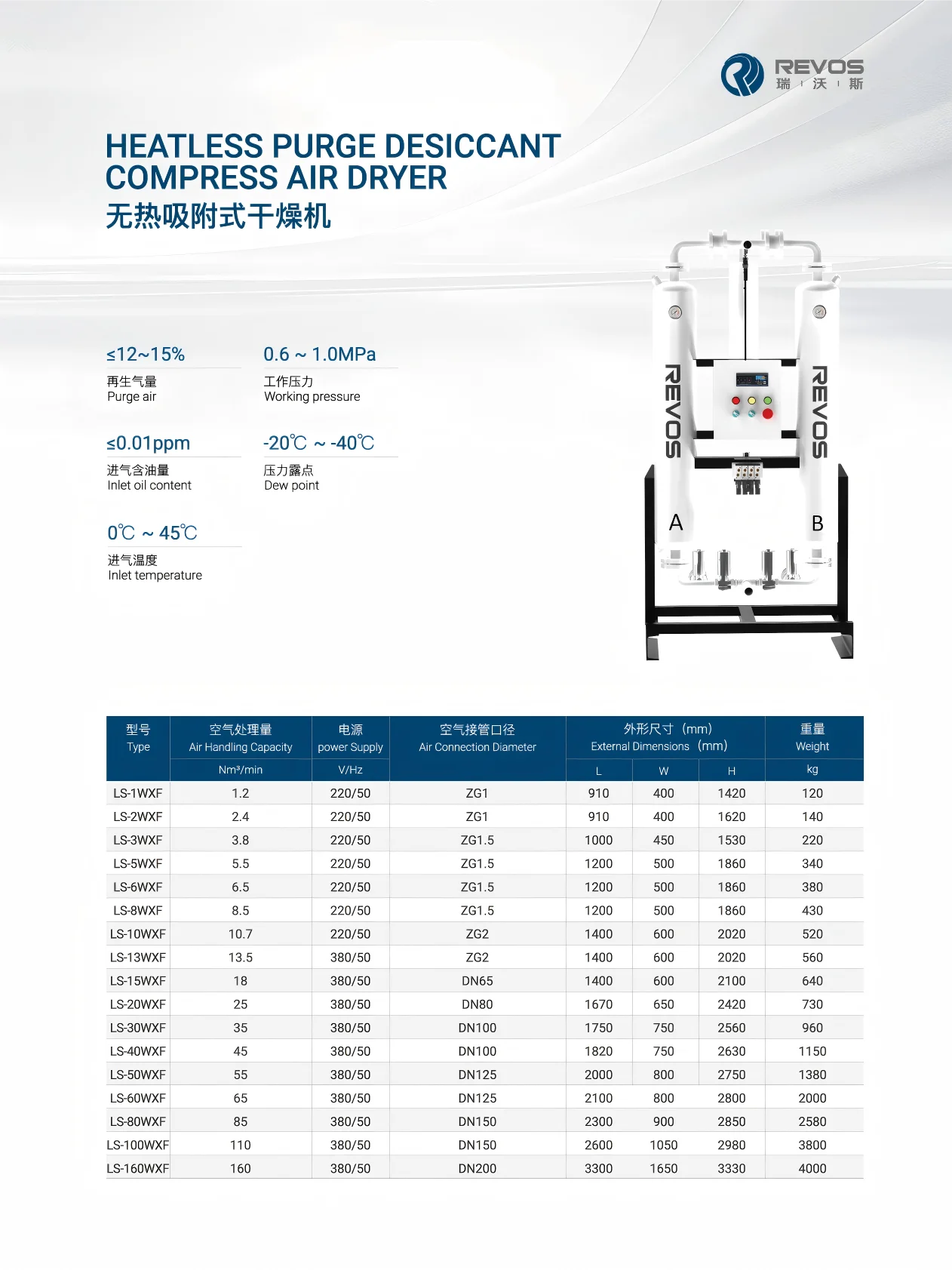 (LS-80WXF) Heatless Purge Desiccant Compressed Air Dryer