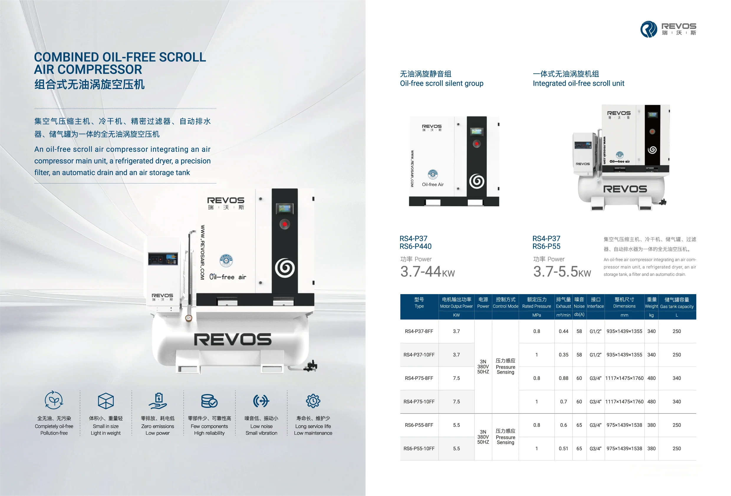 (RS6-P55-10FF)5.5KW Integrated Oil-Free Scroll Air Compressor