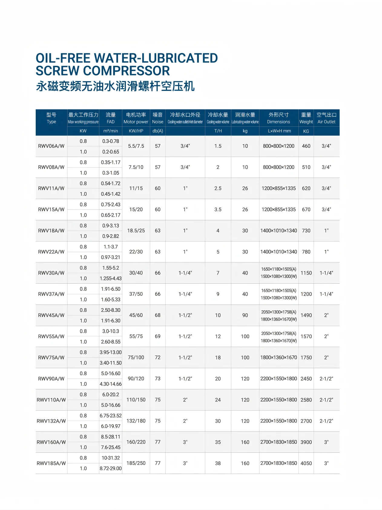 (RWV18A/W)18KW Oil-Free Water-Lubricated Screw Air Compressor